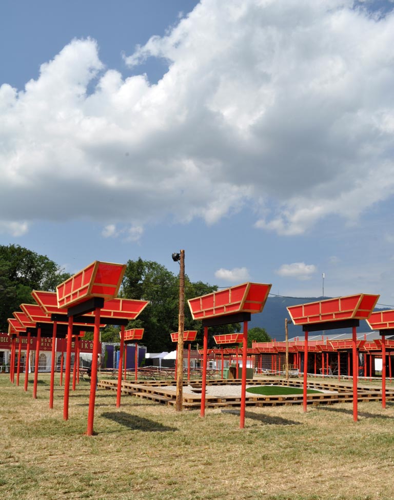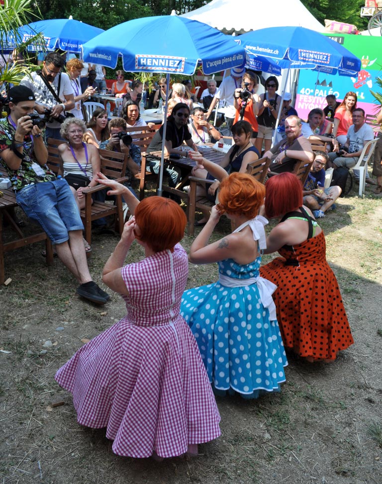 | Prélude: Paléo accueille les journalistes avec Pat'Mouille et ses Mouillettes, puis les emmène à la découverte de l'univers de son 40e anniversaire, vers le Village du Monde aux couleurs de l'Extrême-Orient et l'Air Factory de l'HES-SO... Paléo, ça décoiffe (et ça donne soif)... |