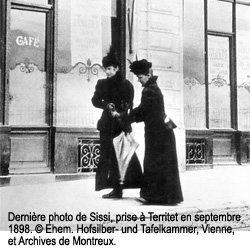 En août 1898, elle descend au Grand-Hôtel de Caux parce qu'en bas, au bord du lac, il fait chaud et la foule est trop dense. De nombreuses personnes séjournent à Montreux et beaucoup d'hôtes caressent l'espoir de croiser ou même de côtoyer les visiteurs célèbres, telle Sissi, véritable mythe. Sissi a la bougeotte, ses nombreuses promenades ne suffisent plus à calmer son anxiété.