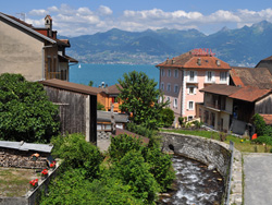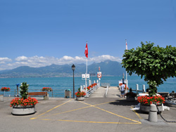 | This village, on the Franco-Swiss border on the south bank of Lake Geneva, boasts the longest beach on the lake, in a unique setting at the mouth of the Morge river, connecting the French Haute-Savoie with the Swiss Valais. |