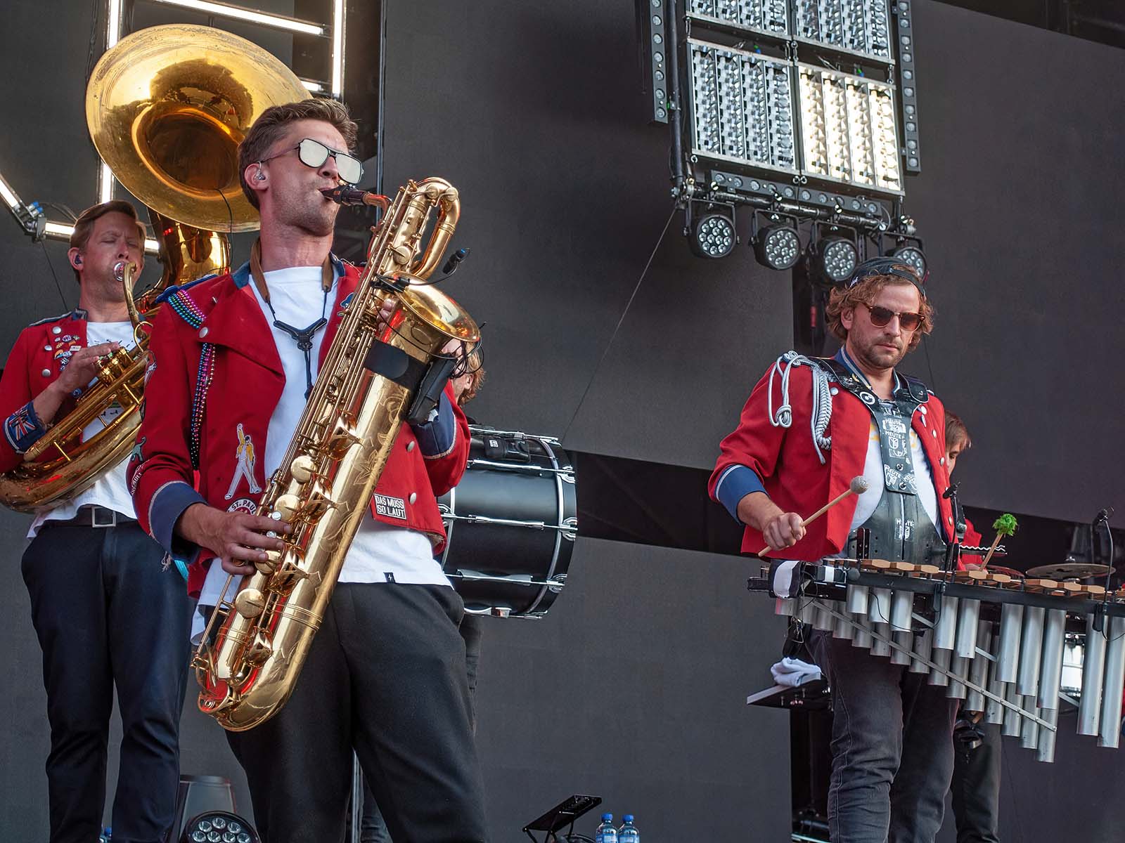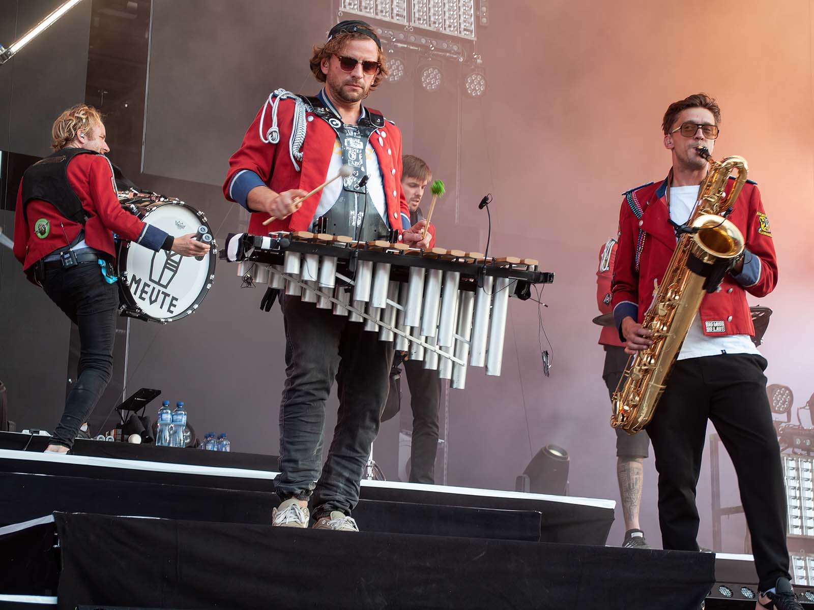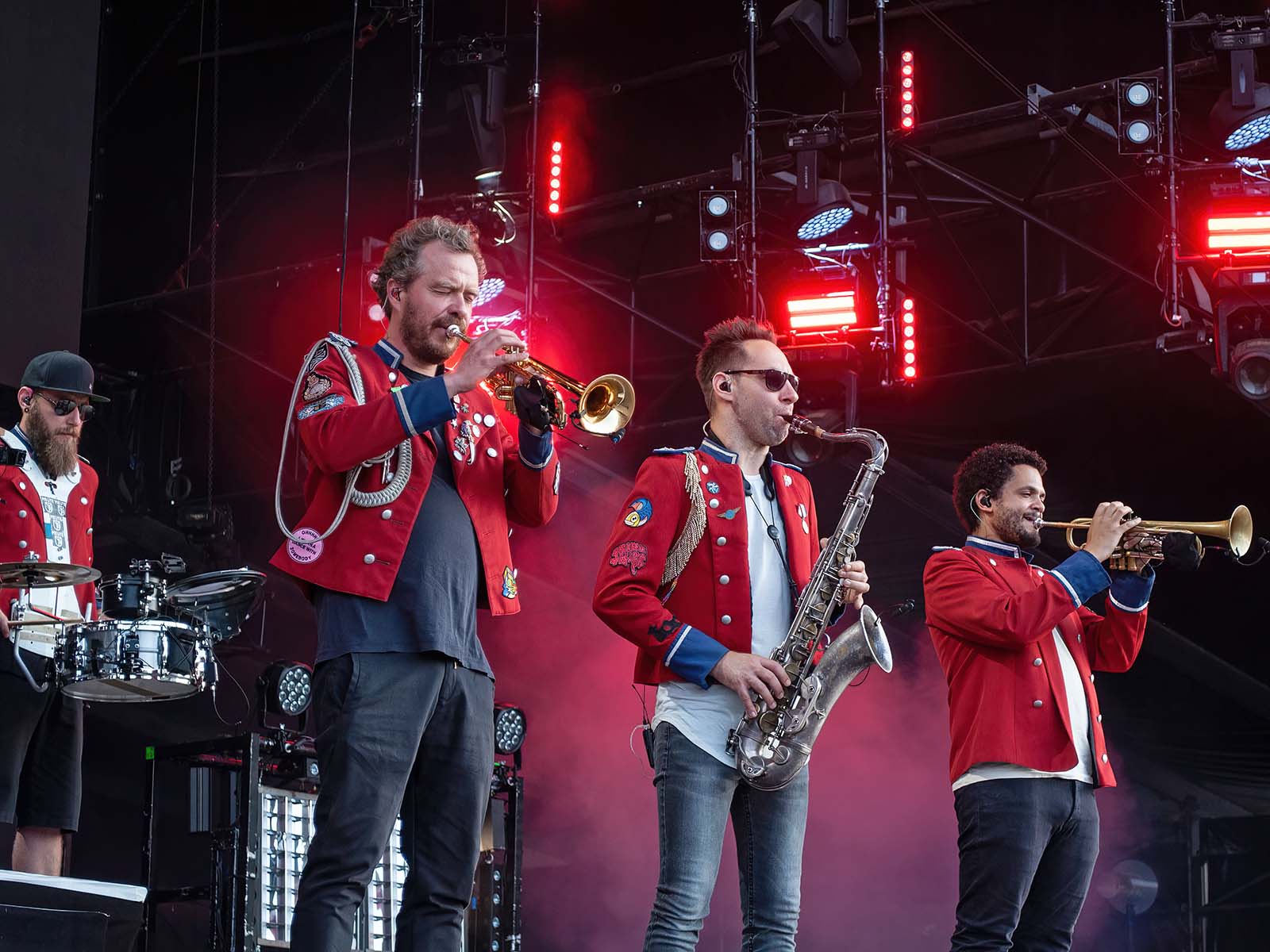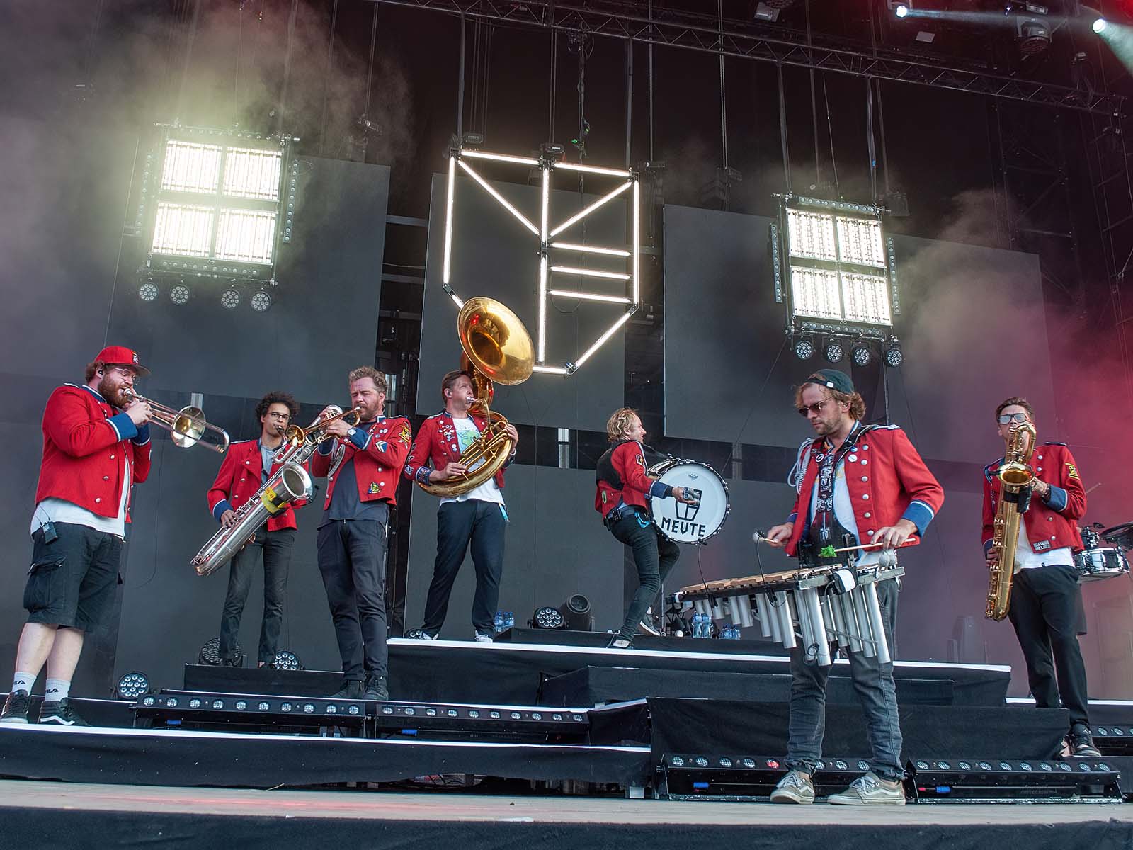 De grands hits techno revisités par une fanfare allemande en uniforme. Commentaire (authentique) d'un photographe vaudois (ou peut-être fribourgeois): «S'ils font venir Meute, j'irai à tous les girons!» Tout est dit.