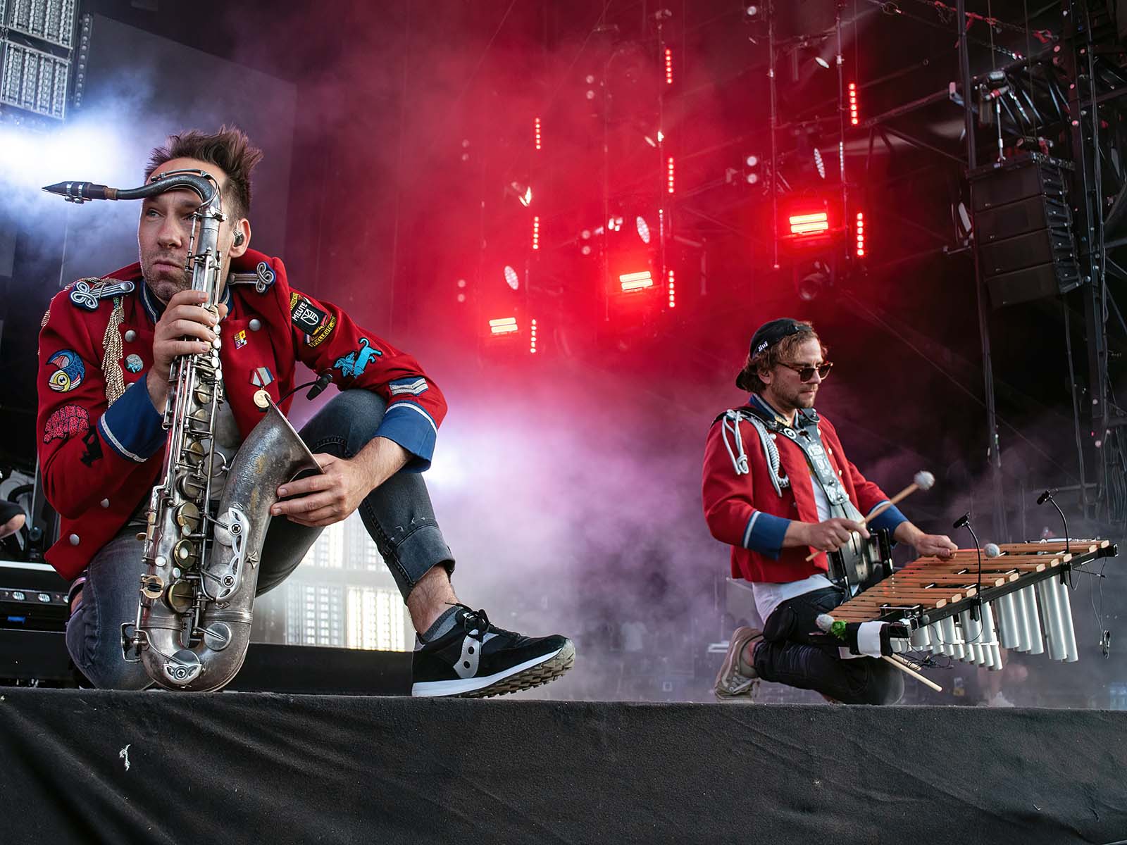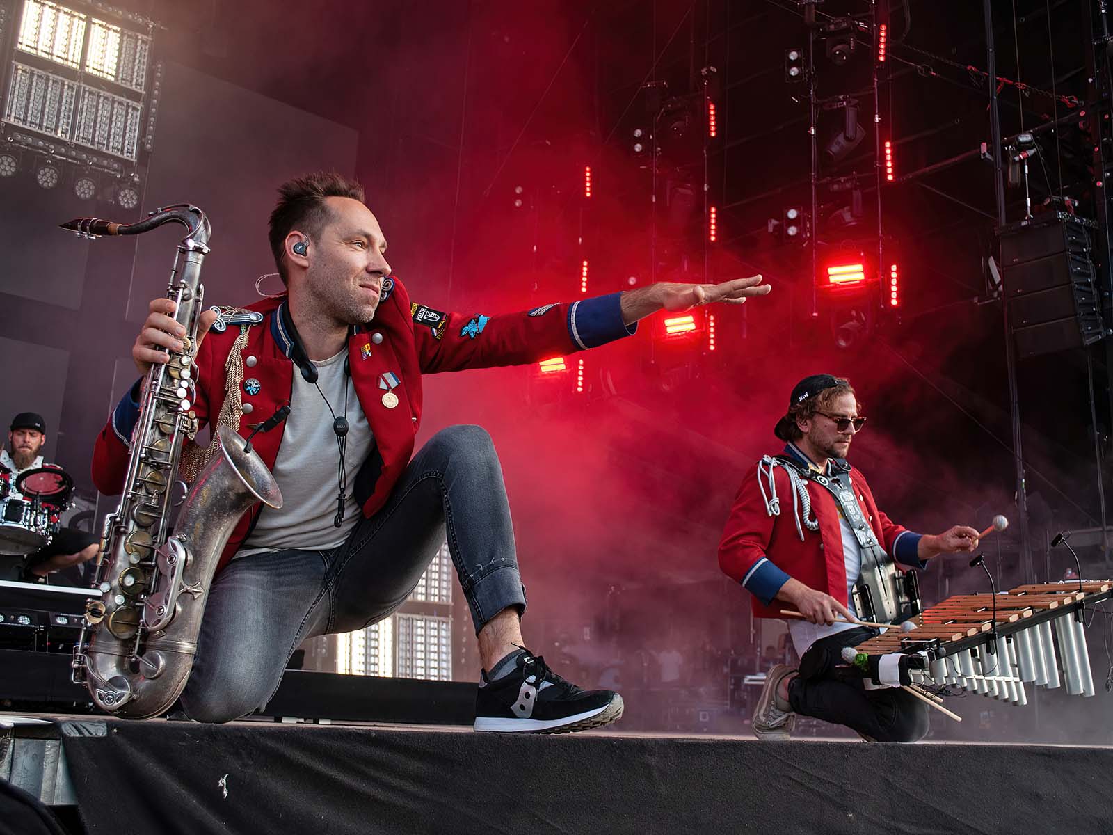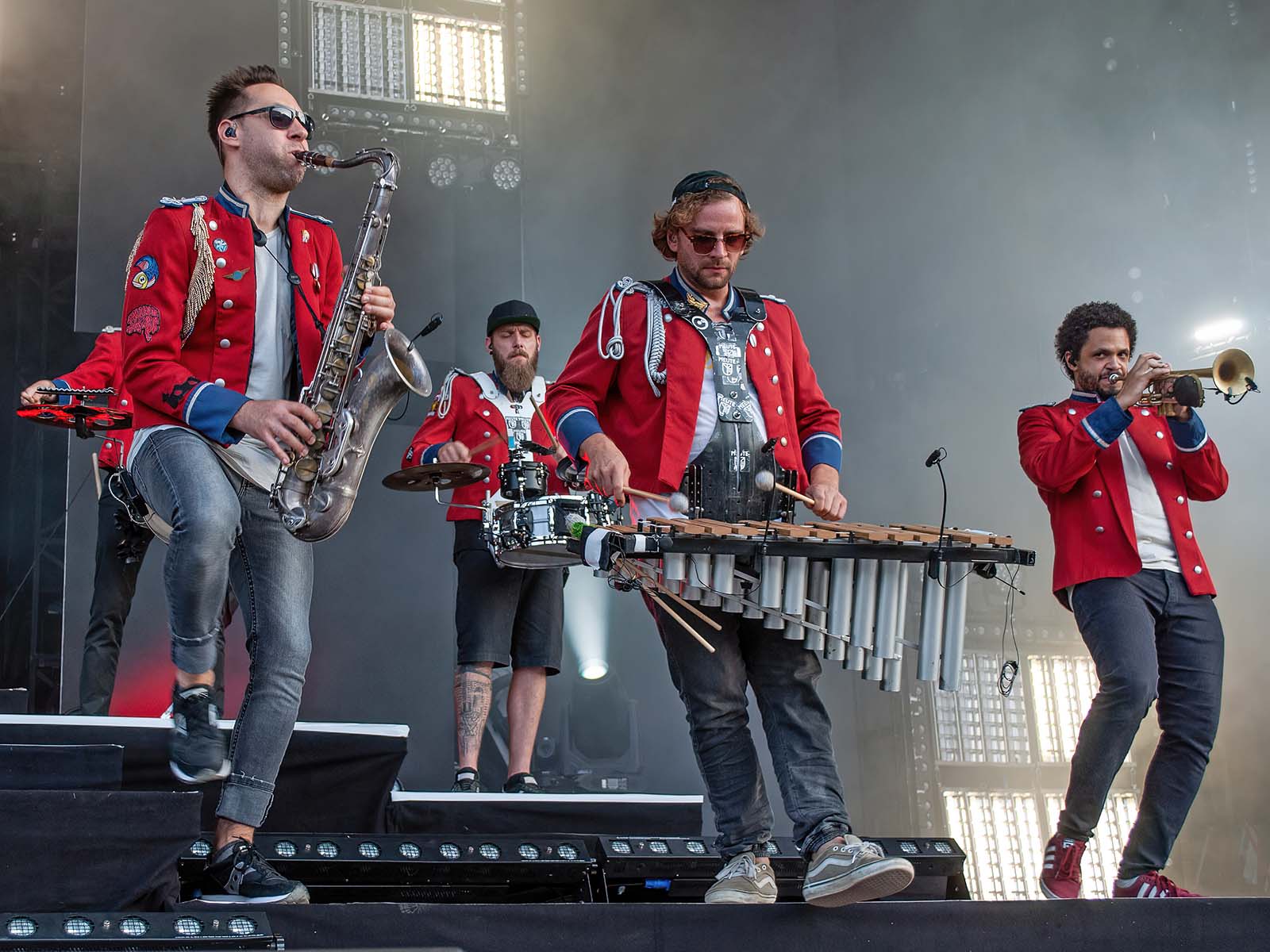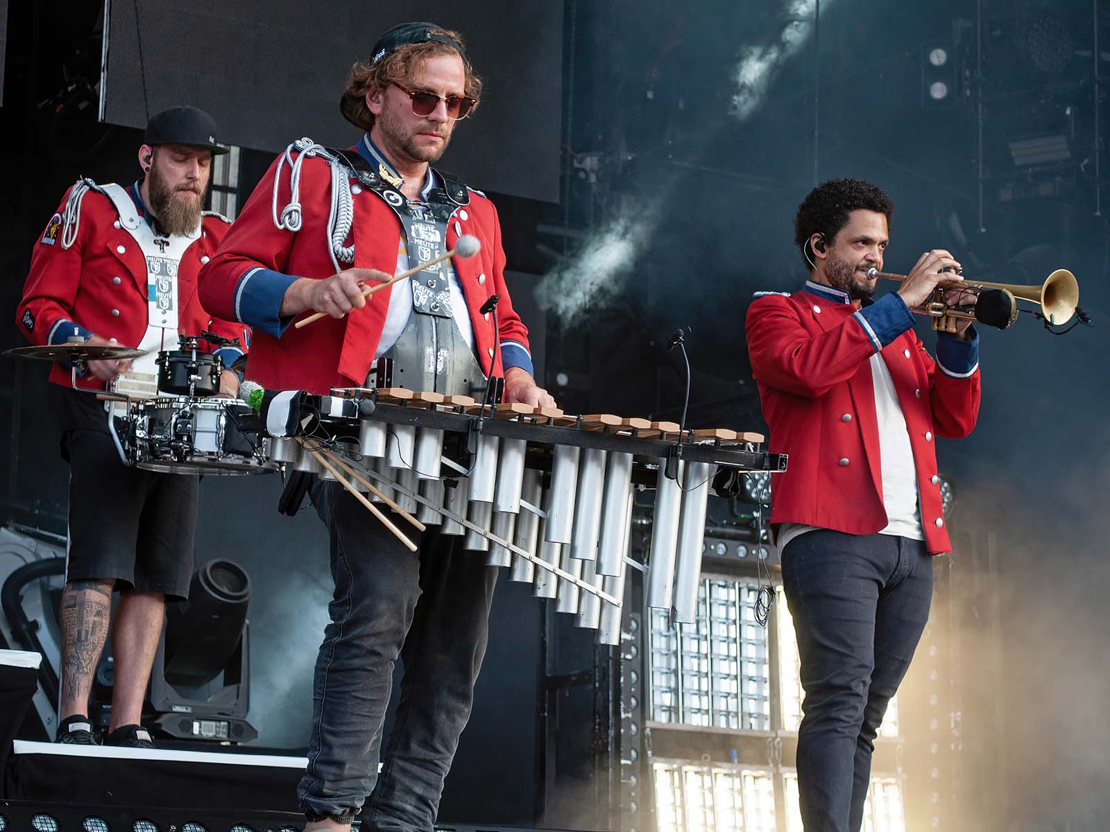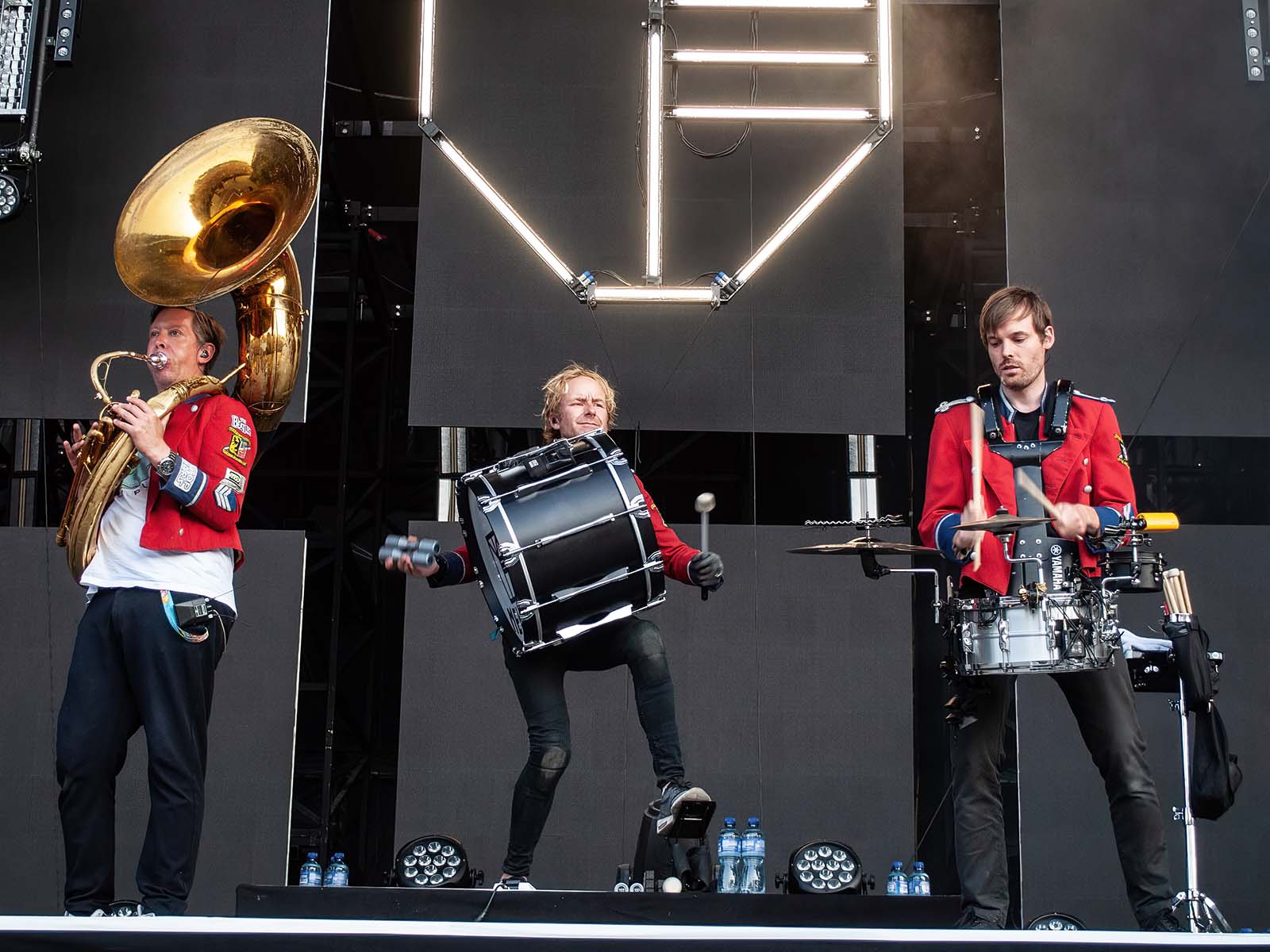 De grands hits techno revisités par une fanfare allemande en uniforme. Commentaire (authentique) d'un photographe vaudois (ou peut-être fribourgeois): «S'ils font venir Meute, j'irai à tous les girons!» Tout est dit.