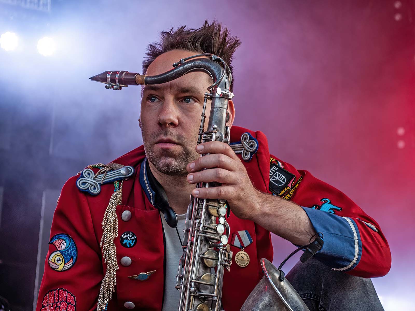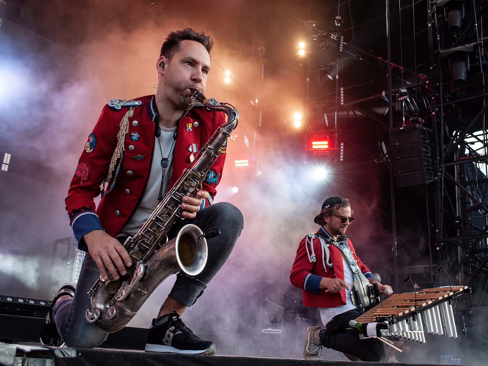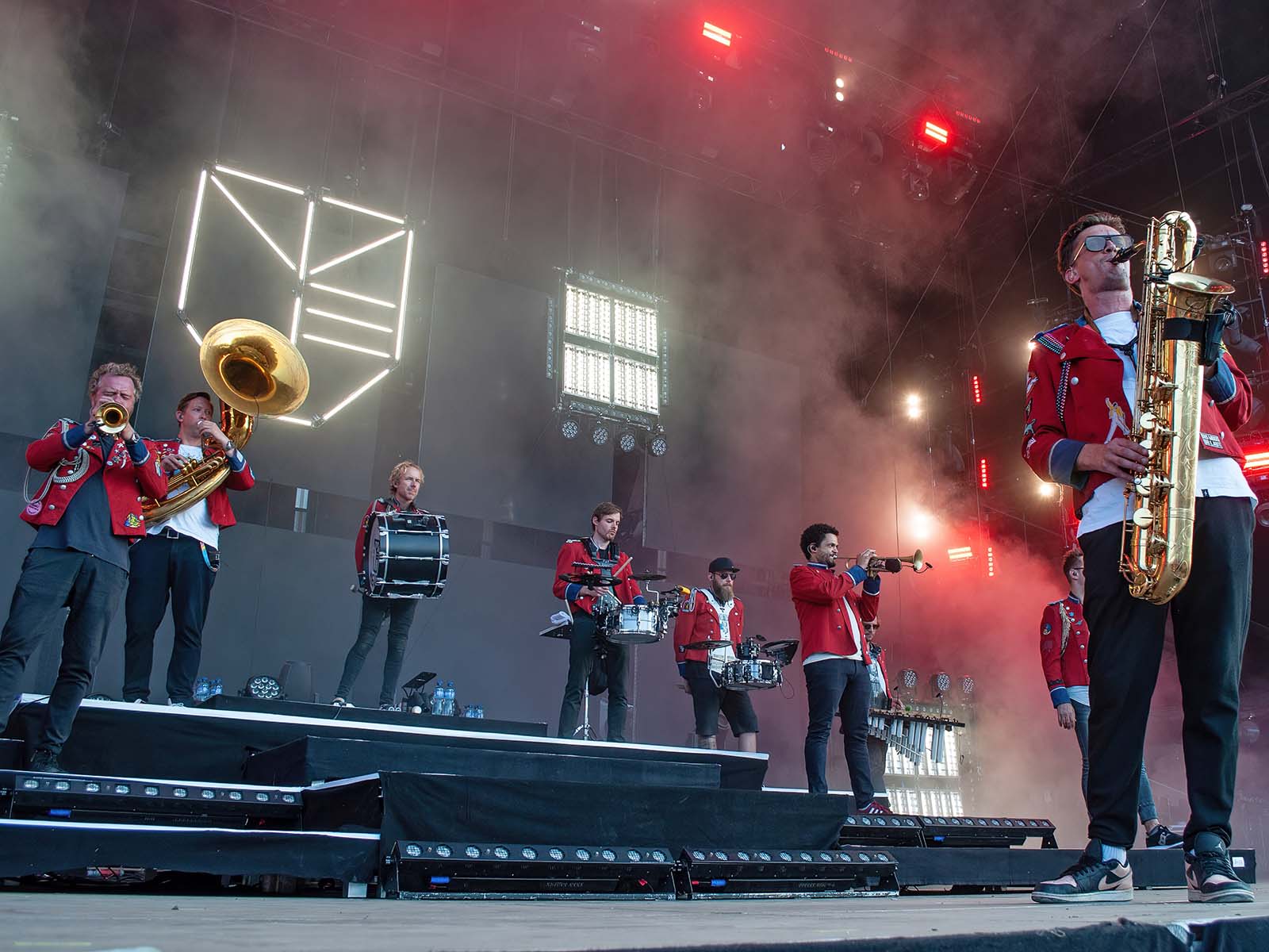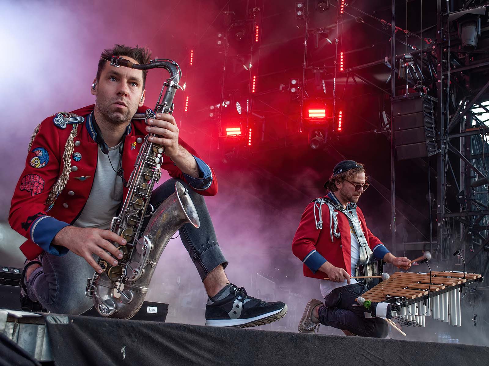 De grands hits techno revisités par une fanfare allemande en uniforme. Commentaire (authentique) d'un photographe vaudois (ou peut-être fribourgeois): «S'ils font venir Meute, j'irai à tous les girons!» Tout est dit.